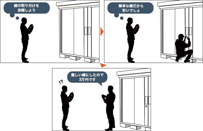 事例②「安い鍵を取り付けてもらおうと思ったのに・・・」